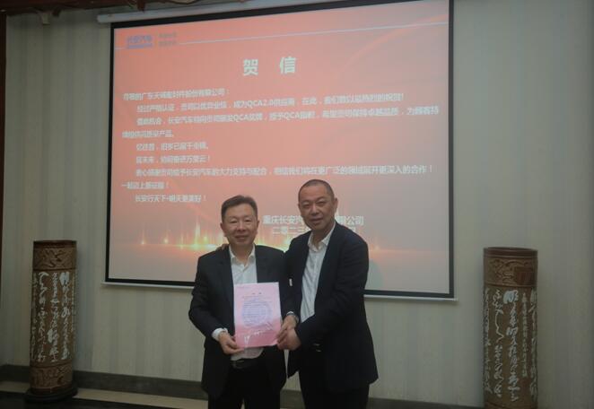 上午9:30交流會(huì)正式開始,會(huì)上,長安汽車總工程師王波先生向天誠公司頒發(fā)了QCA賀信并對天誠公司發(fā)展表示肯定與勉勵(lì)。